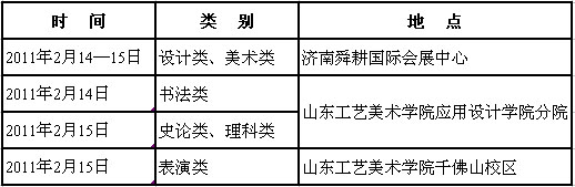 【表演專業(yè)只接收現(xiàn)場報名,報名時間:2011年2月14日;報名地點:山東工藝美術(shù)學(xué)院千佛山校區(qū)】